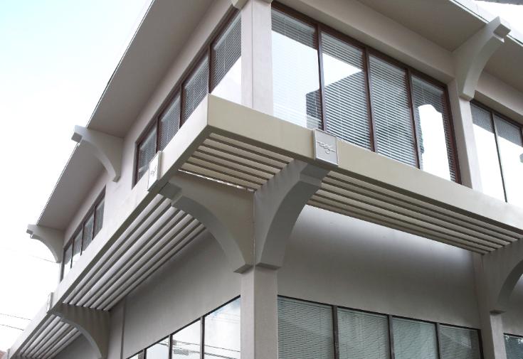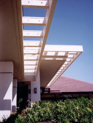 Ilcol Building renovation, Honolulu, Hawaii. Fiberglass corbels, medallions and trellis system using 2" x 6-1/2" and 4" x 12" members.