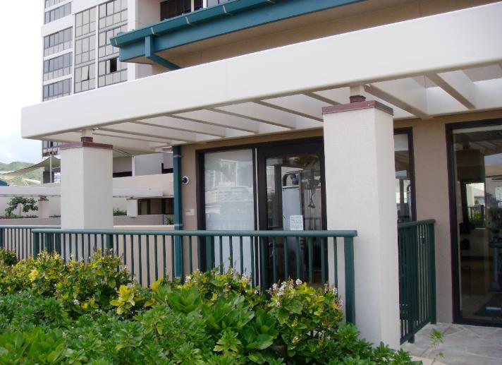 2x6 FRP trellis members and post pedestal covers, Waihonua at Kewalo Condominium, Honolulu.