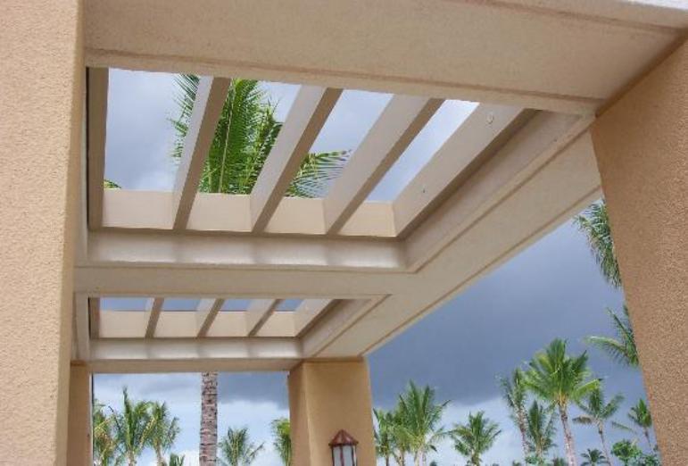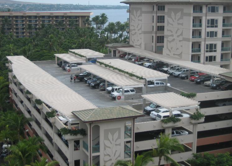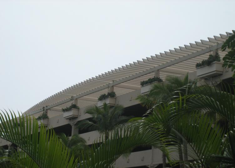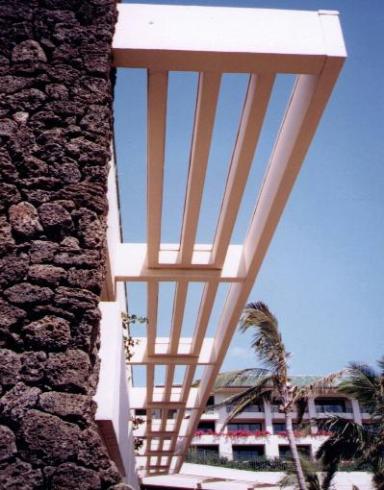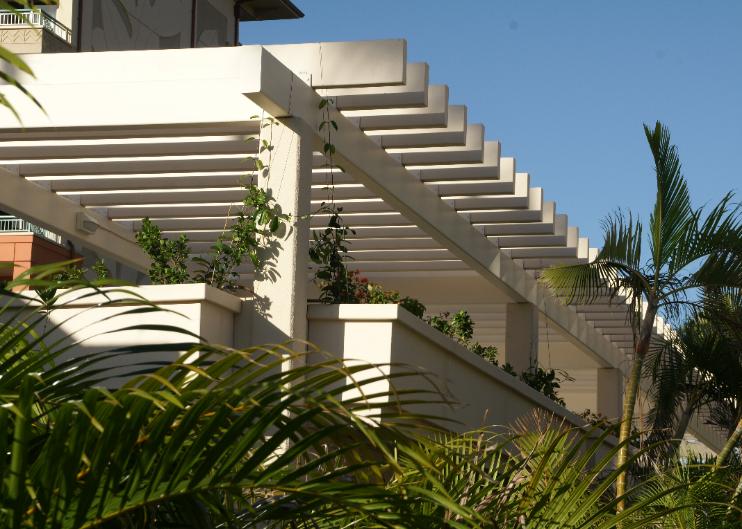 Rooftop trellis using 4" x 12" FRP members. Maui Marriott Ocean Club Lahaina Parking Structure,
