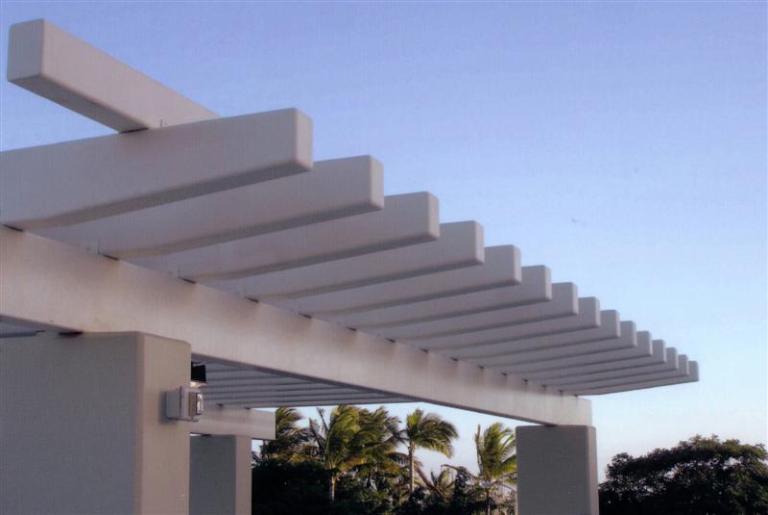 4" x 12" FRP trellis members attached to steel frame, Keola La'i Condominium, Honolulu